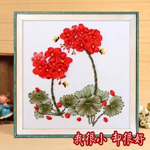 丝带绣挂画手工diy套件天竺葵 丝带绣新款3d立体绣印花植物花卉