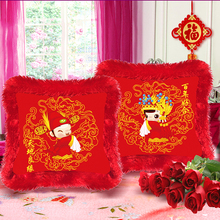 大红十字绣抱枕 婚礼一对新款客厅印花婚用结婚喜庆对枕卧室靠枕