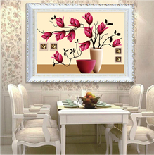 5d魔方圆钻石绣贴钻画卧室钻石画油画餐厅点粘十字绣客厅玉兰花瓶