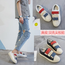 韩版春季真皮平底魔术贴小白鞋女学生软底休闲运动百搭旅游板单鞋