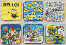 16cm*16cm玩具总动员三眼仔小*黄人外贸卡通纯棉全棉小方巾小毛巾