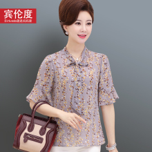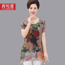 中老年t恤女妈妈装春装短袖t恤中年女装夏装雪纺衫上衣30-40-50岁