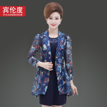 婚礼妈妈装秋装两件套连衣裙中年女装夏装长袖风衣外套套装
