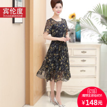 中年女装夏装妈妈装雪纺连衣裙修身显瘦中老年连衣裙40-50岁薄款