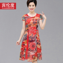 中年女装短袖旗袍连衣裙中老年妈妈装夏装连衣裙雪纺裙子40-50岁
