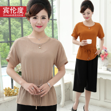 中年妈妈装夏装套装t恤40-50岁休闲春装短袖两件套中老年女装上衣