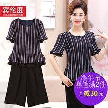 妈妈装夏装雪纺套装短袖t恤30-40-50岁2017新款中老年套装两件套