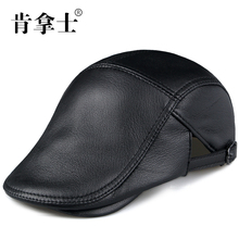 肯拿士 男女士休闲真皮护耳保暖鸭舌皮帽平顶八角帽头层牛皮帽子