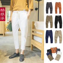 酷狼派男士棉麻七分裤韩版潮修身小脚短裤男沙滩裤7分裤薄款夏季