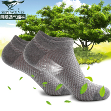 七匹狼男袜网眼袜船袜子男士纤维透气防臭短袜夏天竹炭黑夏季薄款