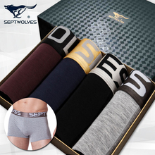 七匹狼男士内裤男平角裤纯棉短裤透气全棉四角裤头青年中腰底裤男