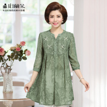 中老年女装妈妈衬衣女七分袖2017春装新款棉外套薄款大码40-50岁