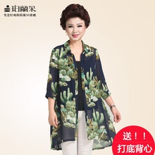 中老年女装春夏装中袖雪纺衬衫中年人胖妈妈装大码中长款上衣夏季