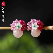 意大利设计师 天然粉晶手工925纯银针耳钉