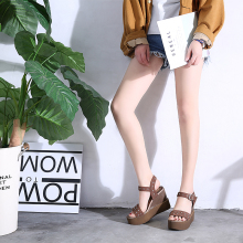 2017夏季新款真皮坡跟高跟厚底凉鞋罗马鱼嘴百搭魔术贴休闲凉鞋女
