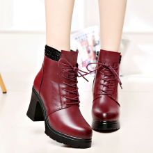 冬季真皮靴子马丁靴粗跟高跟女士雪地靴防滑水台中筒30 40 50棉鞋