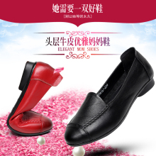 春季软底妈妈真皮单鞋女士平底鞋中老年人鞋休闲防滑大码圆头鞋女