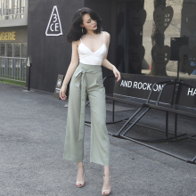 推荐 欧美街拍百搭优雅高腰9分阔腿裤 送腰带0.3
