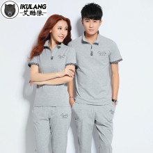 IKULANG/艾酷狼情侣运动服套装男 夏季 短袖长裤 跑步装男女 纯棉