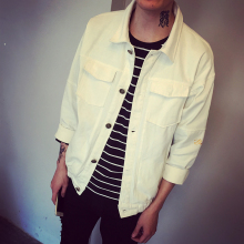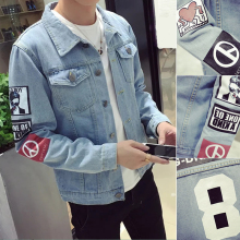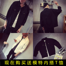 春季快手红人同款夹克衫牛仔外套修身精神小伙社会潮流情侣男女