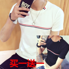 买一送一快手红人同款男短袖t恤修身社会小伙精神小伙潮男半袖衫