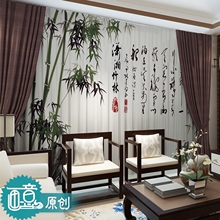 高档定制遮光窗帘客厅书房窗纱特价中式半透明纱帘【潇湘竹林】T