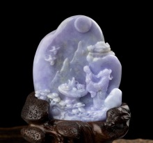 爱翡翠 精品摆件批发 紫罗兰摆件《独钓寒江雪》(RX0249)