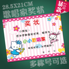 A4幼儿园培训机构奖状批发 卡通猫幼儿园奖状 歌唱家音乐家奖状
