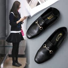 2017欧美春季新款平底女单鞋英伦风平跟金属扣方头复古乐福鞋皮鞋