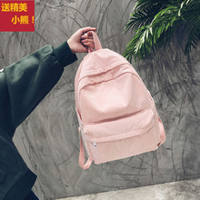 韩国代购款纯色休闲帆布双肩包中学生书包男女旅行包学院风电脑包