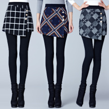 冬季大码女士外穿显瘦加绒包臀踩脚裙裤保暖黑色加厚假两件打底裤