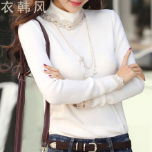 冬季大码女士内搭加绒加厚高领打底衫女长袖蕾丝纯棉百搭保暖上衣