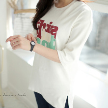 夏季学生宽松五分袖纯棉短袖T恤女内搭 学院风中袖开叉中长款上衣
