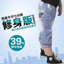 【清仓】男童牛仔七分裤夏儿童裤童装男中大童牛仔七分裤中裤马裤