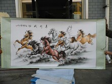 国画字画八骏马 书画礼品画装饰画八骏图六尺横幅彩八马已装裱 2