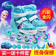 冰雪奇缘儿童溜冰鞋女轮滑鞋套装直排轮男闪光轮可调旱冰鞋迪士尼