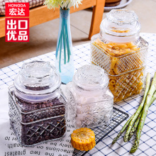 宏达无铅雕花玻璃瓶 厨房储物密封罐茶叶罐杂粮储物罐食品密封罐