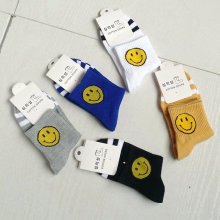 韩国流行卡通笑脸表情原宿二杠条纹中筒袜子纯棉 春秋男女长袜