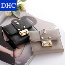 DHC2017新款短款牛皮欧美拉链潮个性女钱包女士复古锁扣三折钱夹