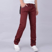 淘狐2017春季新款裤子男士酒红色休闲裤男修身小脚男裤韩版潮百搭