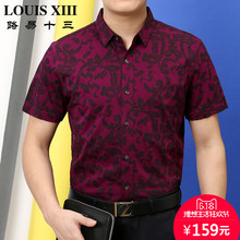 衬衫男短袖2017新品夏季翻领双丝光棉免烫印花衬衣路易十三清仓