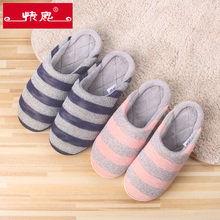 秋冬季棉拖鞋家居家室内条纹可爱情侣男女保暖毛月子加厚底拖鞋冬