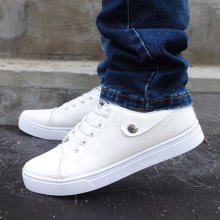 春季新款男士休闲鞋黑白色皮鞋帆布鞋韩版运动板鞋学生单鞋男鞋子