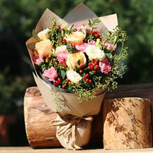 彩色香槟粉玫瑰花束桔梗花北京鲜花同城速递广州佛山深圳上海花店