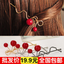 6热卖地摊货源日韩国义乌小饰品批发 樱桃蝴蝶结潮女发夹头饰卡子