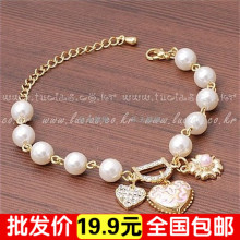 日韩国版小饰品批发义乌地摊 桃心珍珠D字母爱心 甜美学生手链 女