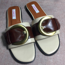 2017新款韩版真皮字母拖鞋女夏平底平跟复古金属扣子凉拖鞋沙滩鞋