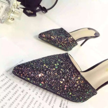 2017凉鞋女夏白色尖头高跟鞋细跟性感亮片透明包头凉拖鞋中跟女鞋