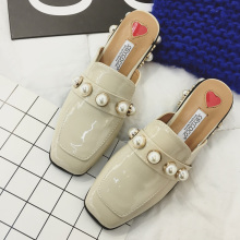 女拖鞋2017春季新款韩版时尚公主气质甜美大珍珠漆皮方头粗跟凉拖