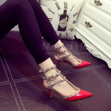 2015夏季新款欧洲站T型绑带铆钉尖头高跟鞋 柳钉细跟凉鞋女铆钉鞋